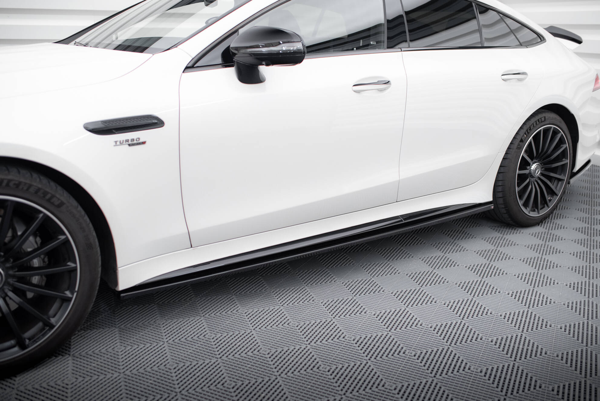 Mercedes-Benz AMG GT 43 (4-deurs, Coupé, V8 Styling Package) - Side skirt splittersMateriaal: ABS plastic